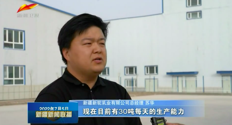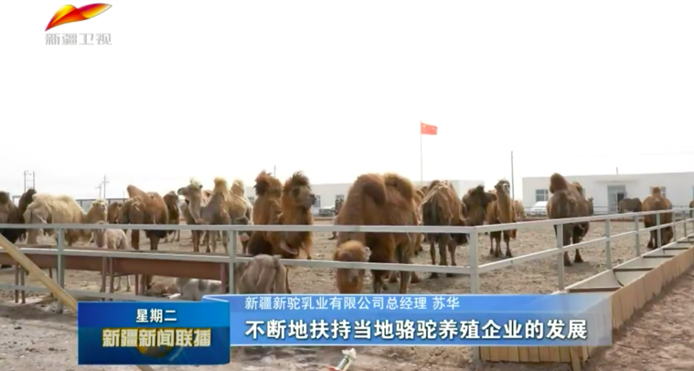 2022年7月5日,在新疆衛視漢語、新疆二套維吾爾語、三套哈薩克語并機直播的《新疆新聞聯播》,對新駝乳業扎根大漠,發展駱駝產業,帶領農牧民增收致富進行報道。新駝乳業作為國內大的駝奶生產企業之一,國資持股,援疆企業,在長期建疆,扎實做好打基礎利長遠工作中,新駝努力把新疆駝奶做到好,帶動更多農戶從事駱駝養殖,助力鄉村振興。