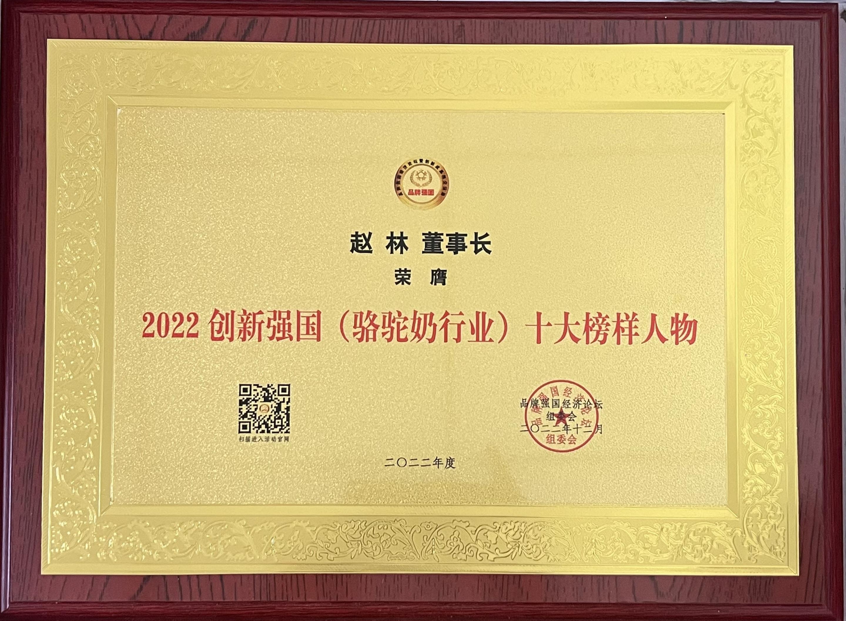 “2022 品牌強(qiáng)國(guó)經(jīng)濟(jì)論壇暨(第六屆)創(chuàng)新成果推介活動(dòng)”上,新疆新駝乳業(yè)有限公司憑借在駱駝奶行業(yè)的影響力和品牌綜合實(shí)力,榮獲“2022 品牌強(qiáng)國(guó)(駱駝奶行業(yè))十大創(chuàng)新力企業(yè)”稱號(hào)、董事長(zhǎng)趙林榮獲“2022 創(chuàng)新強(qiáng)國(guó)(駱駝奶行業(yè))十大榜樣人物”稱號(hào)。